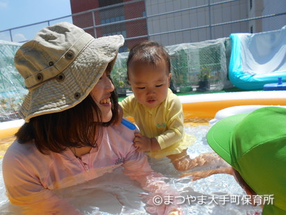 子ども達は水遊びが大好き。どんどん大胆になってきます。