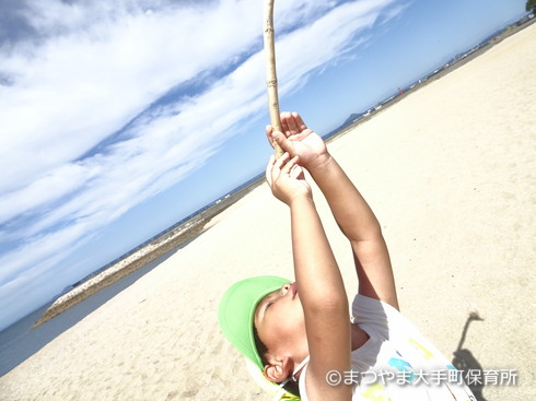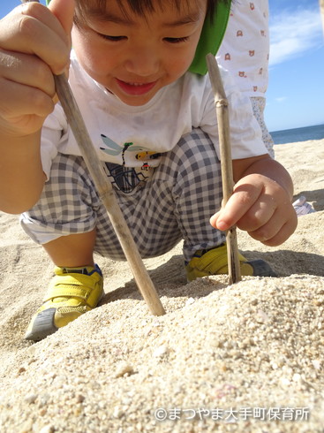 あらあら、砂山に刺すいろんなものを見つけてくるから