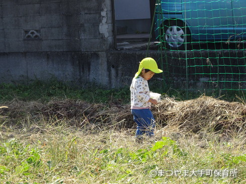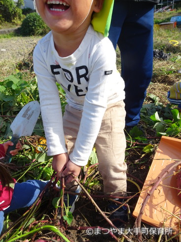 前回、お芋畑の草引きで『お芋大臣』に任命されていた男の子