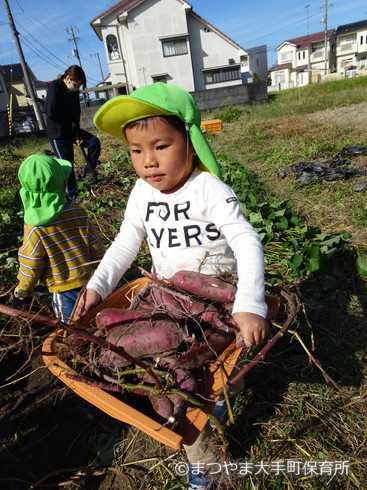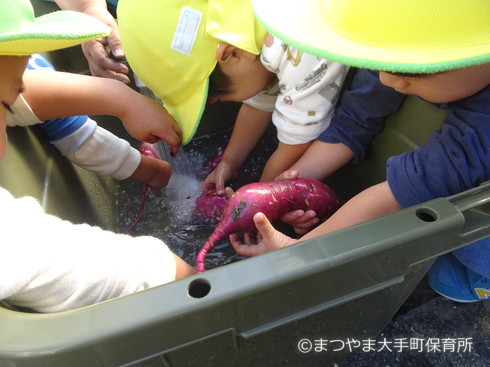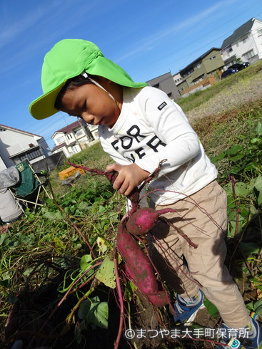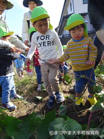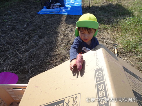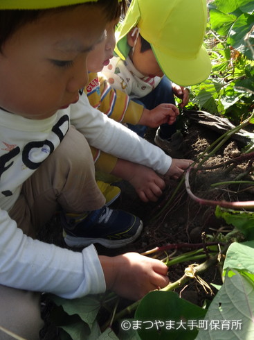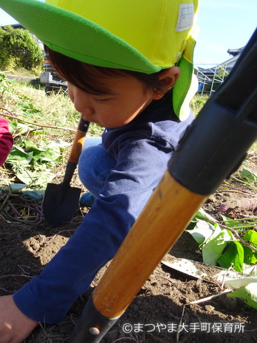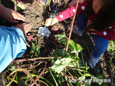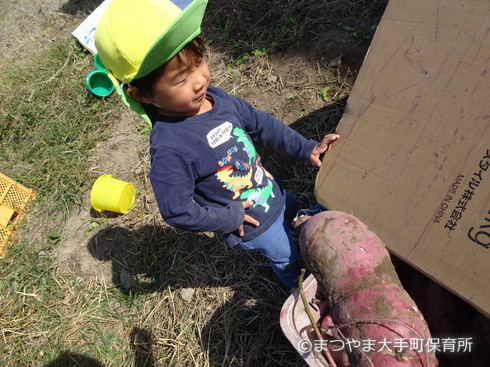 こっちからお芋が顔を出した!いる!〇〇がとる!