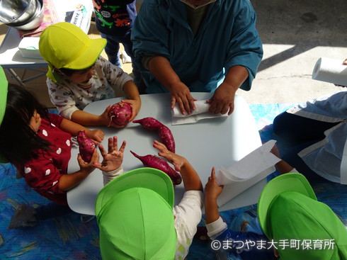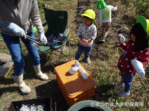 お家へのおみやげ!と子どもたちが紙袋に入れてお芋を持って帰りました。