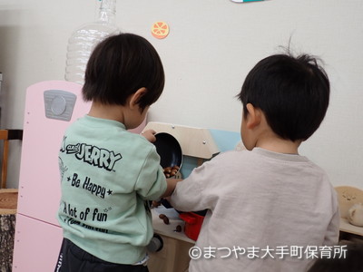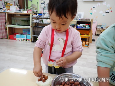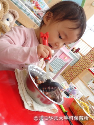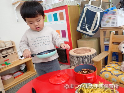 粘土を使うよりも、どんぐりをフライパンやお鍋に移し替えながら