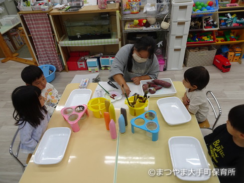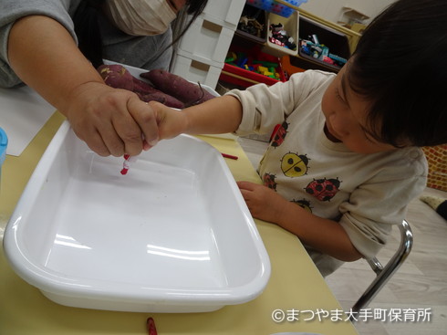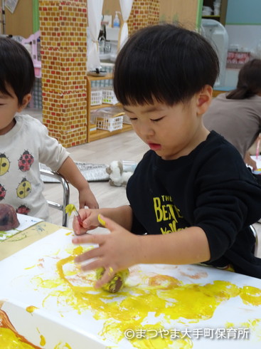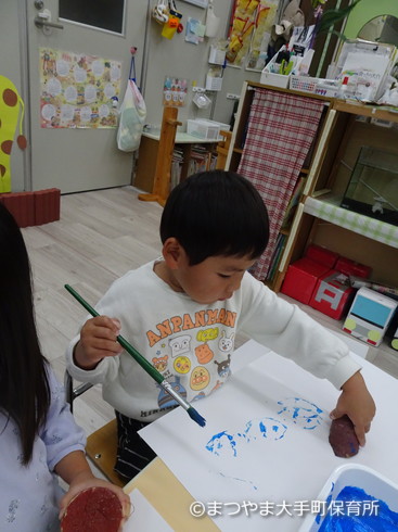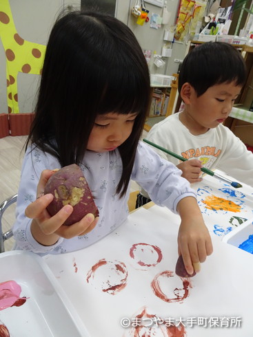 今日はお芋スタンプをしてみましょう♪