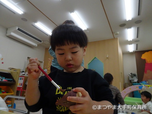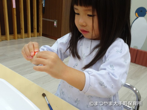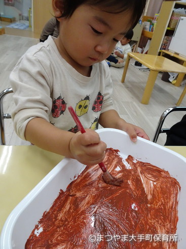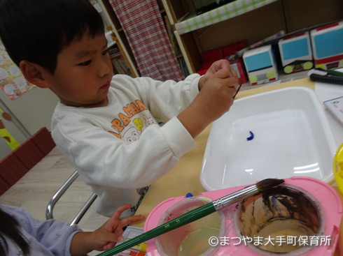 できた色を芋に塗って・・・(真剣