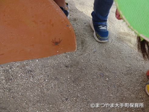 たこさん滑り台に何と!!アースラの友だちらしき大きなクモが。💦