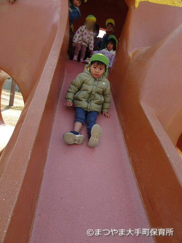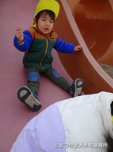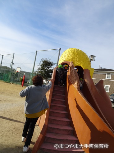 皆で滑り台に避難だーーーっっ!!