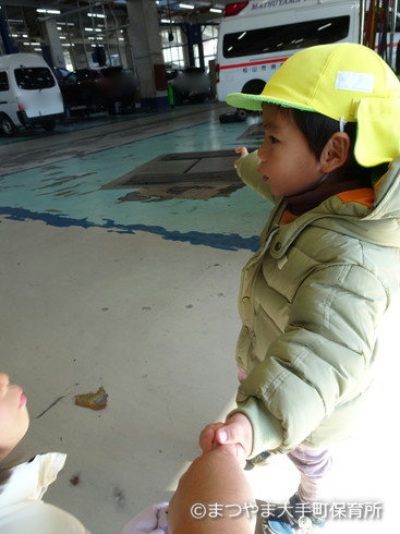 整備の所も見せてもらって救急車のタイヤが外れてるところや