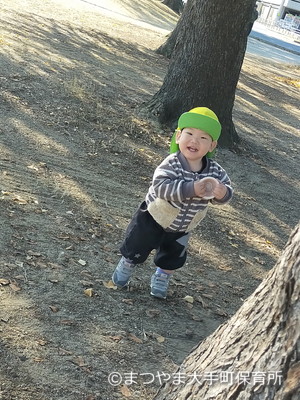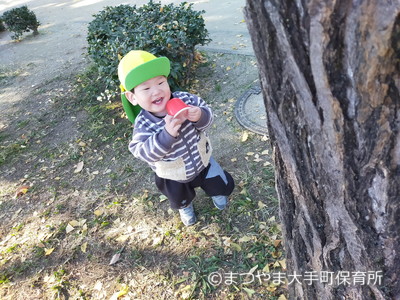 いろんな木に向かって歩いて回り、先生を見つけてはニコニコでした♡