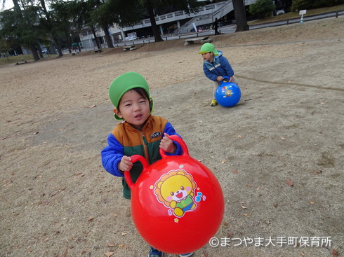 ボヨンボヨンと跳ねる遊具を試しに出発~