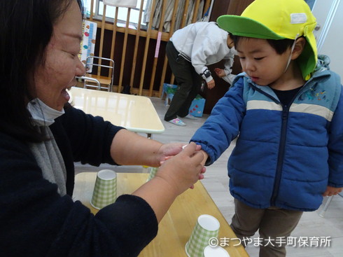 紙コップを移動させまーす さて わかるかな?