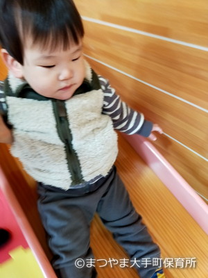 滑るときはドキドキなのか表情が固まる男の子でした(笑)