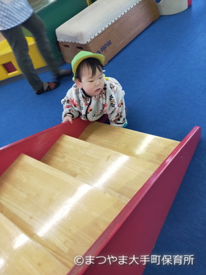 室内遊具では1歳児さんのお隣で滑り台などで遊びました。