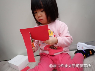 ハサミで切ってちょうどいい大きさにしようね