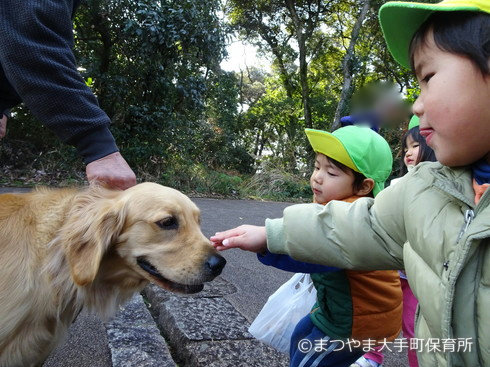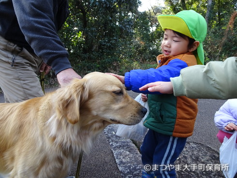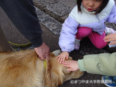 なんだか仲良くなって、わんちゃんは子どもたちの隣にお座りしたりして