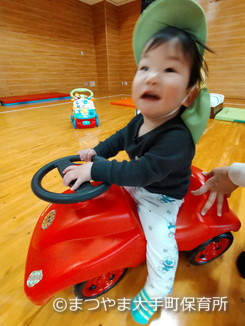 後ろから押してもらいながら、室内を走り回って楽しみました(*^^*)