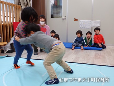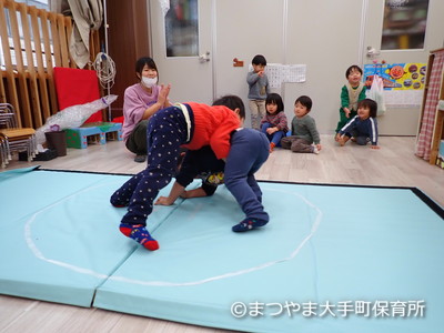 保育士が行司役で、子ども達は小さな可愛い力士といった
