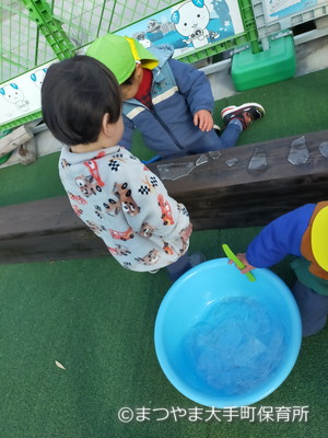 でも、お気に入りの石を見つけた男の子は氷よりも石を見つけて集めていました(笑)