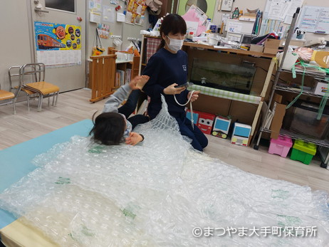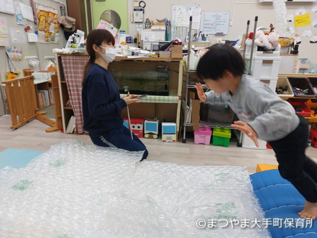 皆の見事なジャンプで 園長先生からのお年玉(おやつ)を