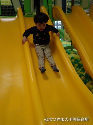わははははは 滑り台からそのままボールの中へ