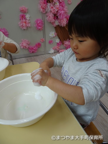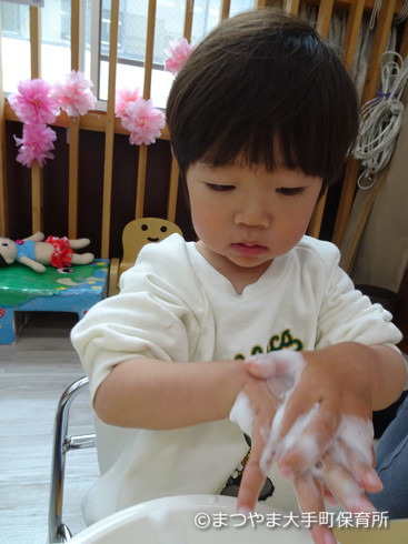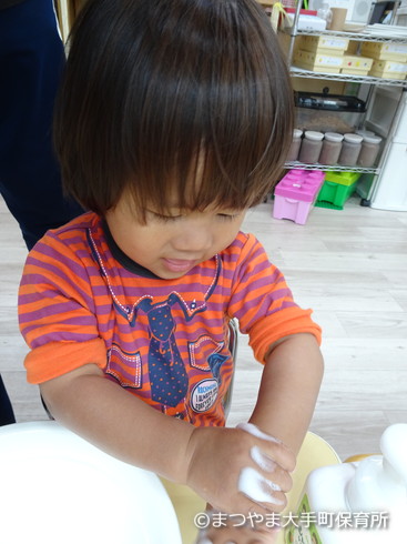 手の甲もしっかり洗うんですよ。はーい