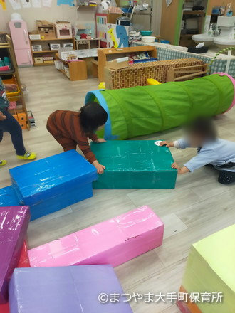 さぁ力持ちさんたち基地を作るための積み木を運んでくれる?