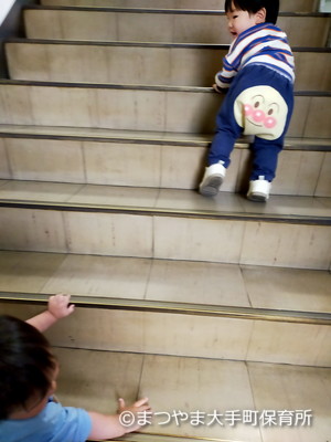 登るのが速い男の子は後ろから付いてくるお友だちを気にしてくれています。