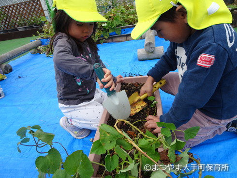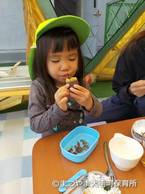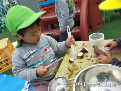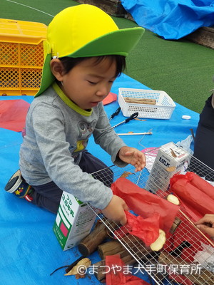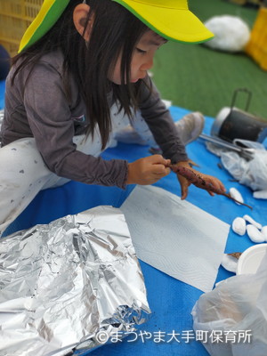 粘土を使うよりも、どんぐりをフライパンやお鍋に移し替えながら