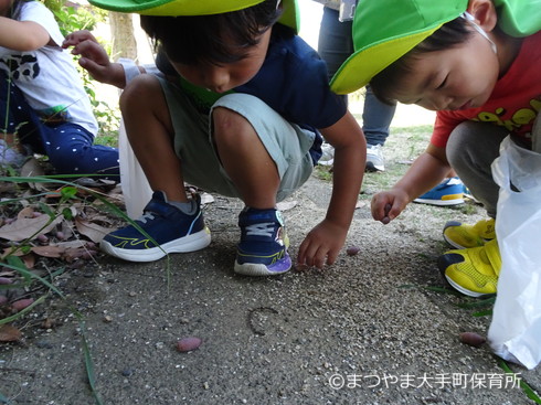 公園に到着するとさっそくどんぐり探し